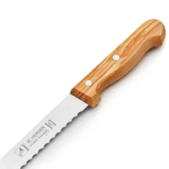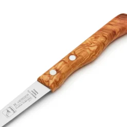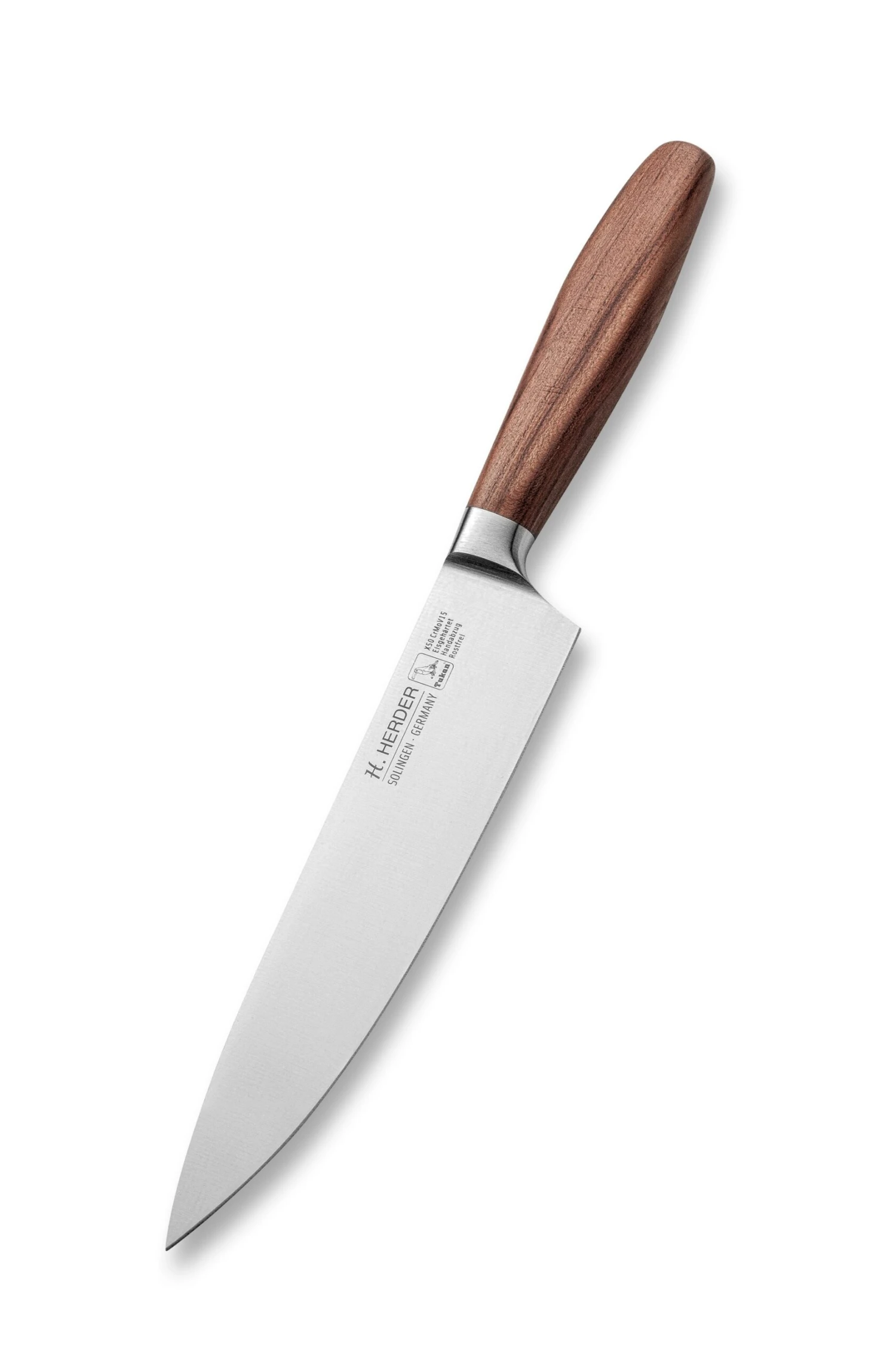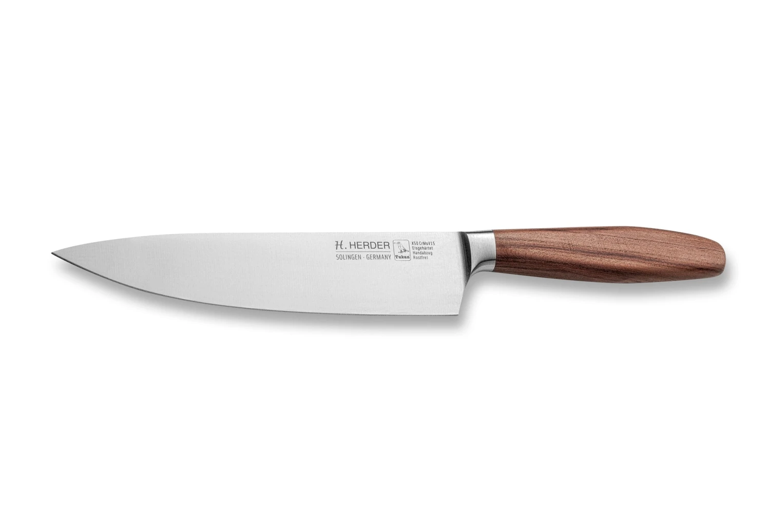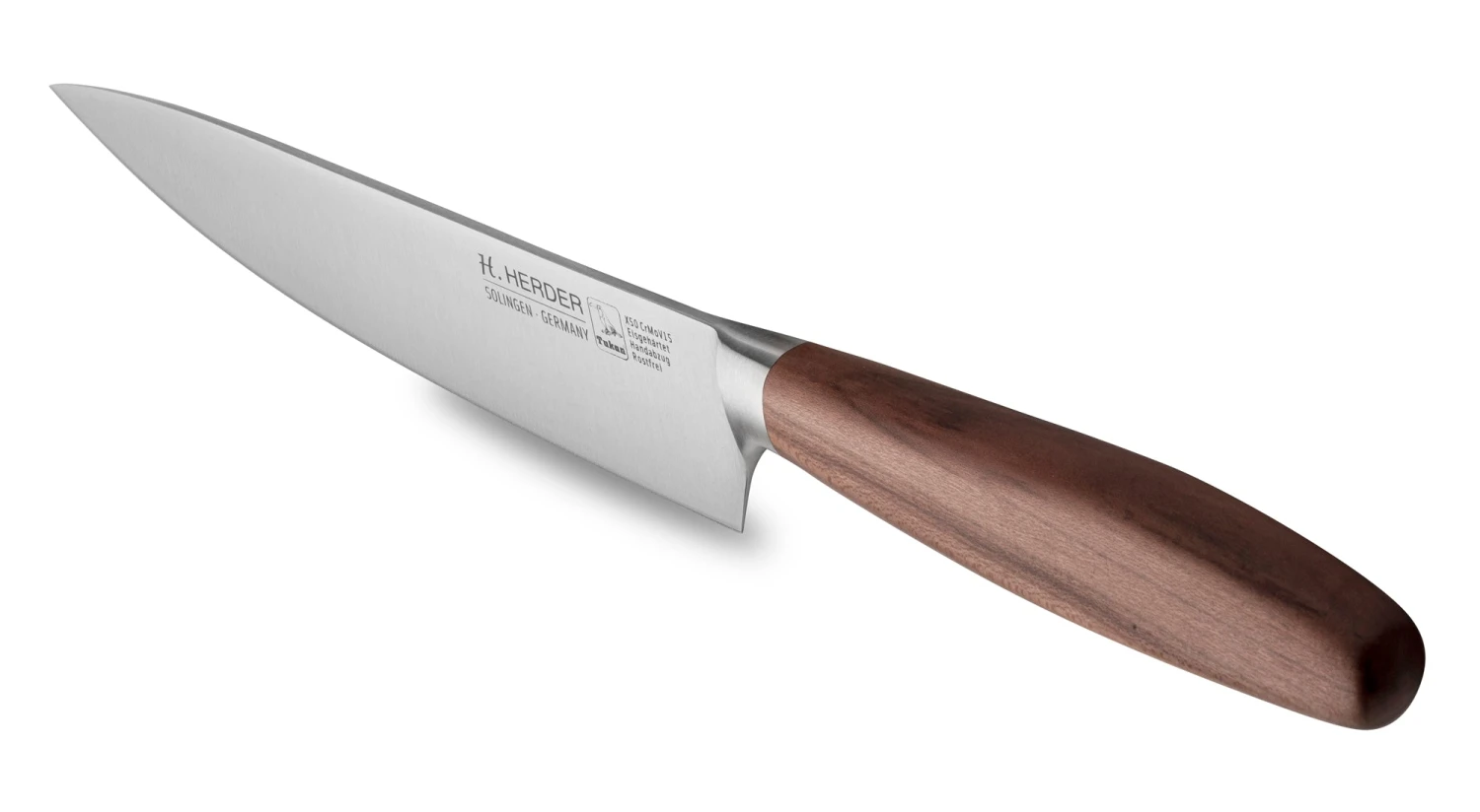 Der Griff ist aus feinstem, gedämpftem Pflaumenholz gefertigt und bietet einen angenehmen, sicheren Halt beim Arbeiten. Das Kochmesser Eterno wurde traditionell von Hand hergestellt und stammt aus der bekannten Messerstadt Solingen.